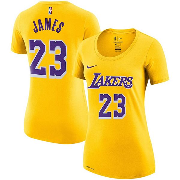 Women S Nike Lebron James Gold Los Angeles Lakers 2019 20 Name Number Performance T Shirt